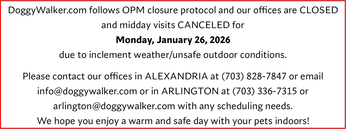 DoggyWalker.com provides an array of services throughout Alexandria and parts of south Arlington.